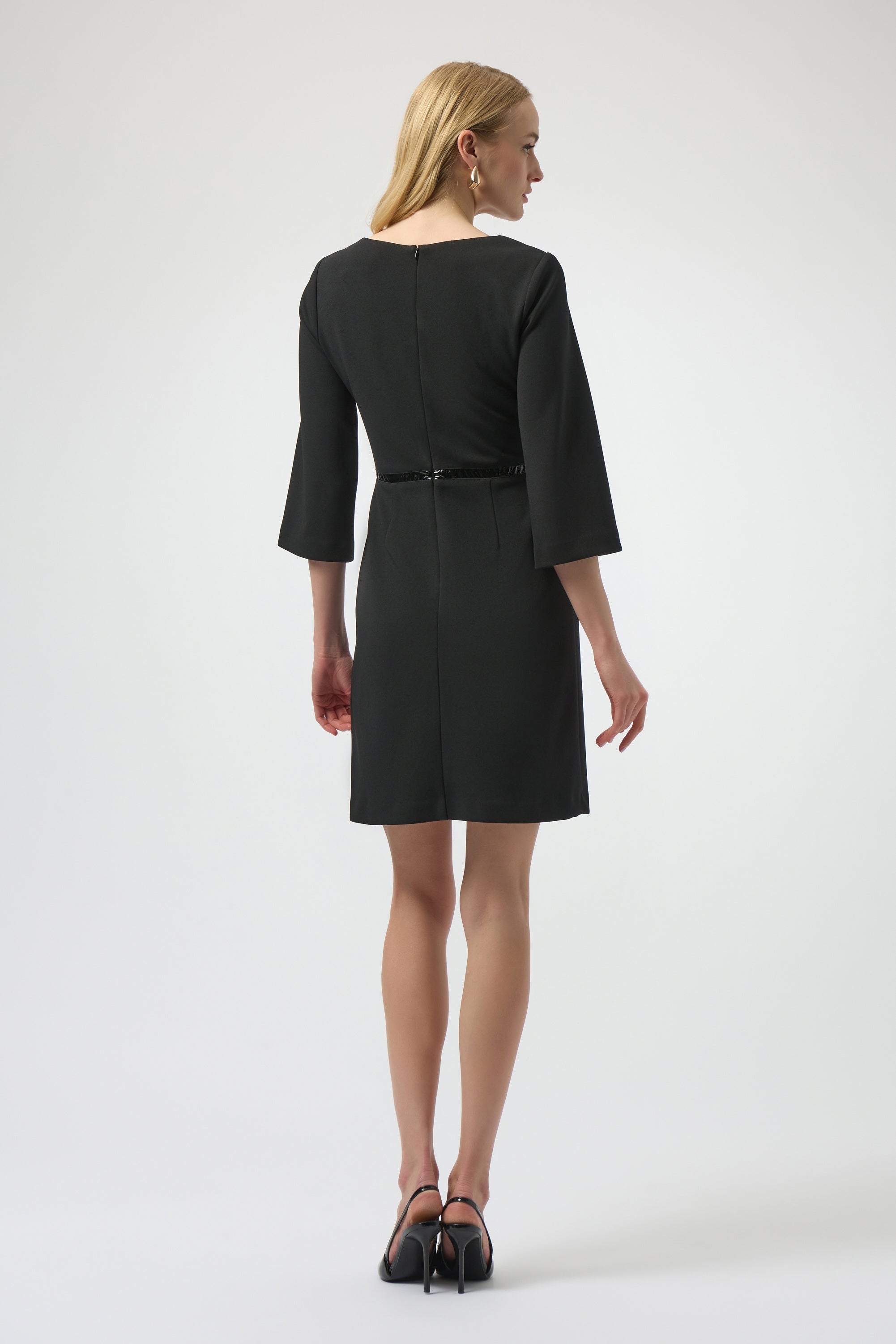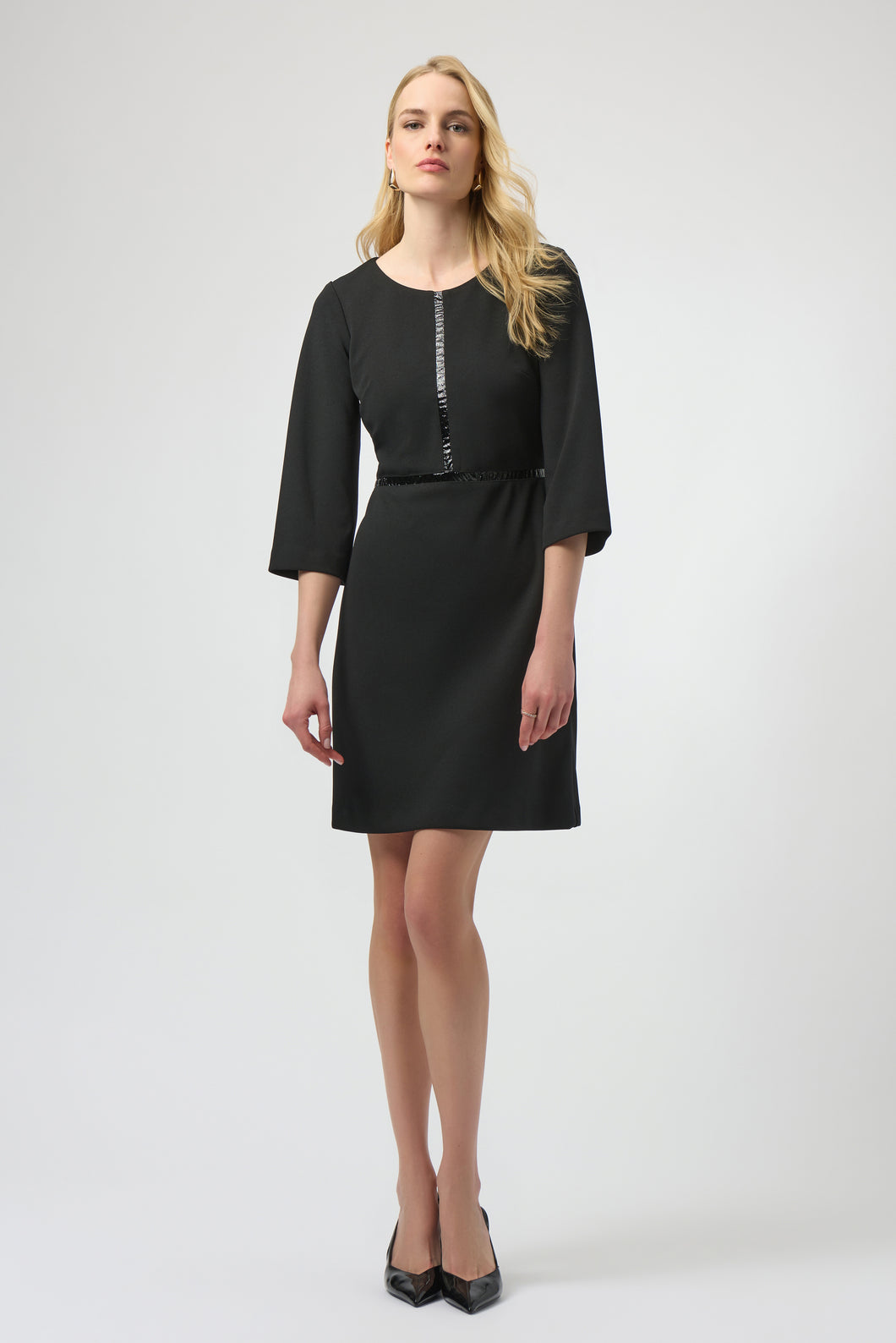 Joseph Ribkoff Scuba Crepe and Leatherette A-Line Dress | Elegant Bell Sleeve Dress – Bella Jules Fashion Boutique Skip to content Background Image