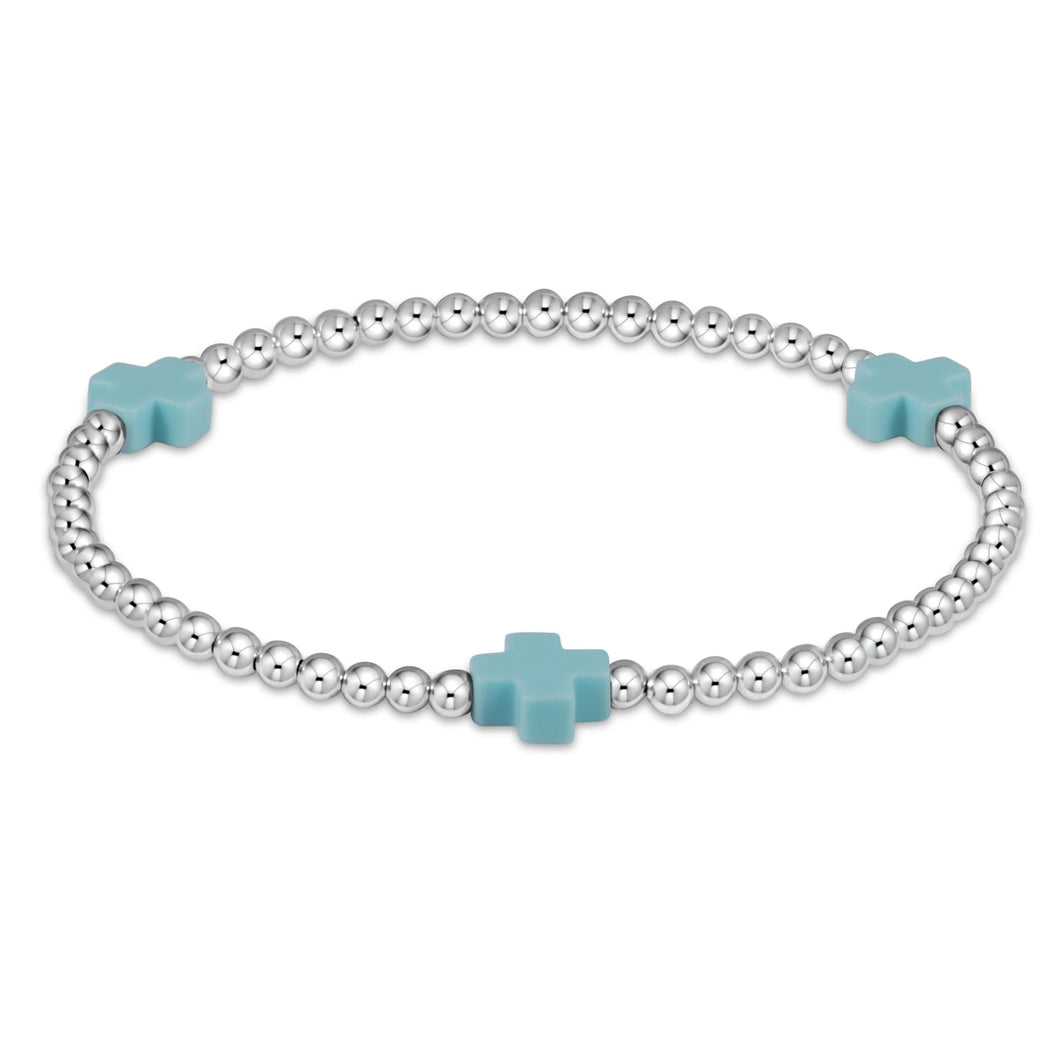 Enewton Signature Cross Silver Pattern 3mm Bead Bracelet - Turquoise